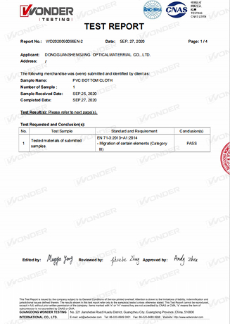 NANTONG SHENG JING OPTICAL TECHNOLOGY DEVELOPMENT LTD được thành lập tại Khu phát triển kinh tế và công nghệ, thành phố Nam Tông, có diện tích 20.000 mét vuông. Nhà máy của chúng tôi chủ yếu là R & D và sản xuất nhiều loại khăn trải bàn bằng nhựa, thảm trải bàn, thảm trải bàn, màng nhựa trong suốt dập nổi, màng tĩnh điện, màng thủy tinh, phim cửa sổ, v.v. Các vật liệu được sử dụng trong sản xuất bao gồm PVC, PU, TPU, EVA, PP, PES, v.v.